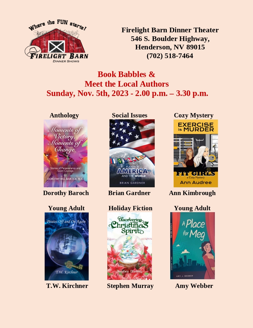 ‘Book Babbles & Meet the Local Authors’ Event – Firelight Barn, Henderson
